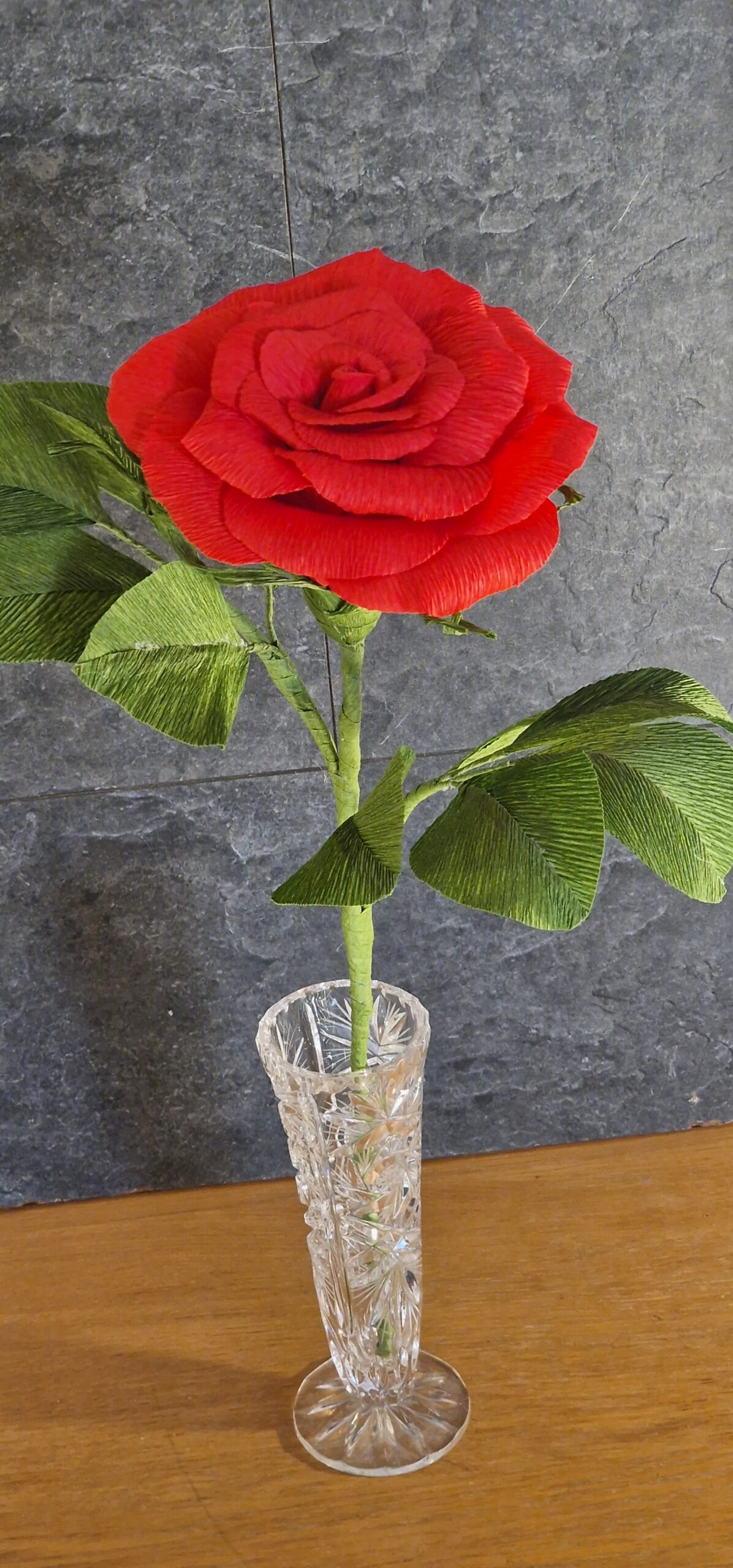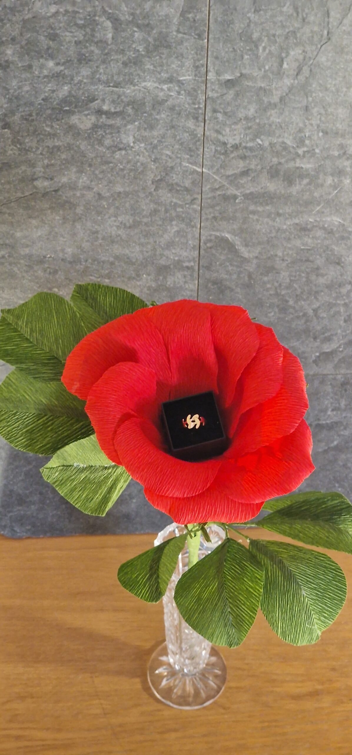 🌹 Handmade red rose made of crepe paper, with hidden ring box inside.